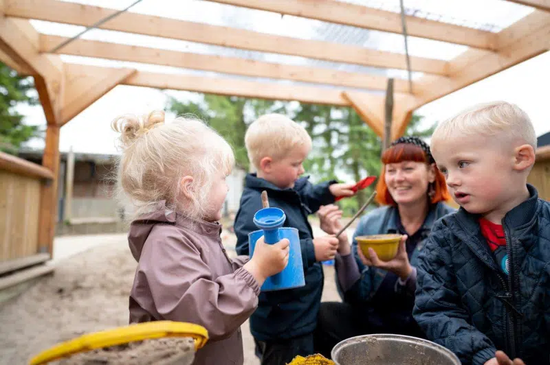 Vi følger børnenes spor; støtter op om og inspirerer til udvikling af samvær og leg.